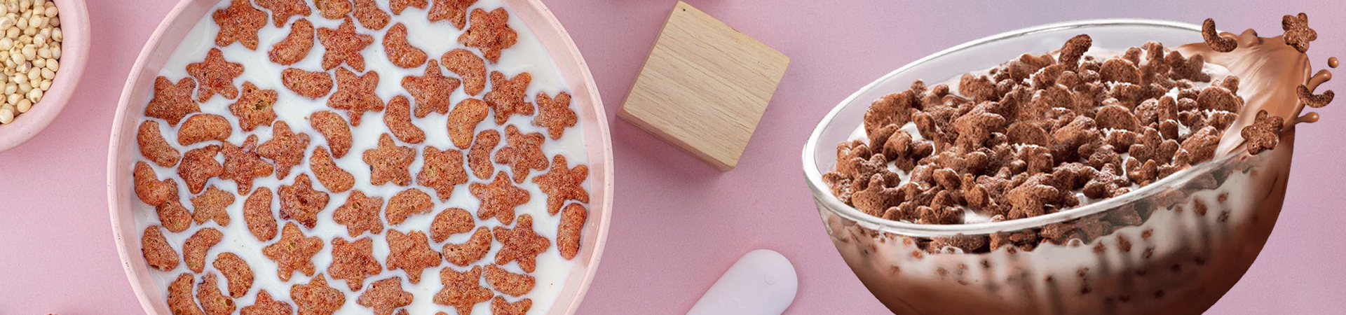 Chocos Moons & Stars is a delightful multigrain breakfast cereal thoughtfully crafted to captivate young taste buds with its fun moon and star shapes and rich chocolaty flavor. Made from wholesome wheat solids and fortified with essential vitamins and minerals, it offers a balanced blend of taste and nutrition in every spoonful. This cereal is a treat for kids .Low in fat, naturally cholesterol-free, and high in protein, Chocos Moons & Stars is also a great source of dietary fiber, calcium, iron, and B-group vitamins—supporting the energy and development needs of growing children. Quick to prepare and fun to eat, it's the perfect way to make mornings a little brighter.